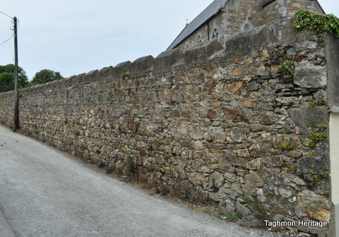 Old stone walls are an integral part of the built heritage of County Wexford and Taghmon has particularly high concentration of them, many of which probably date to the 19th century. In Taghmon good stretches of stone wall are found in front of the Irish Pride bakery, along the Ross Road, along the western side of Stream Street, on Chapel Lane, beside the recycling centre and surrounding the Lady’s/St. Mary’s and St. Munna’s graveyards.